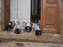 1 mâle noir et blanc, 1 mâle chocolat rouan, 1 femelle noire et blanche, 1 femelle chocolat rouan